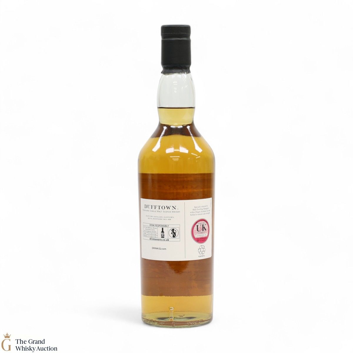 Due to the various ages of bottles and their seals, the condition of liquid is at the buyer's discretion and no claim can be lodged against failure/leakage in transit. Loss and breakage cover is available at 3% of the hammer price as standard. If the lot is not insured, no claim can be lodged against the courier or The Grand Whisky Auction for breakage or loss in transit.