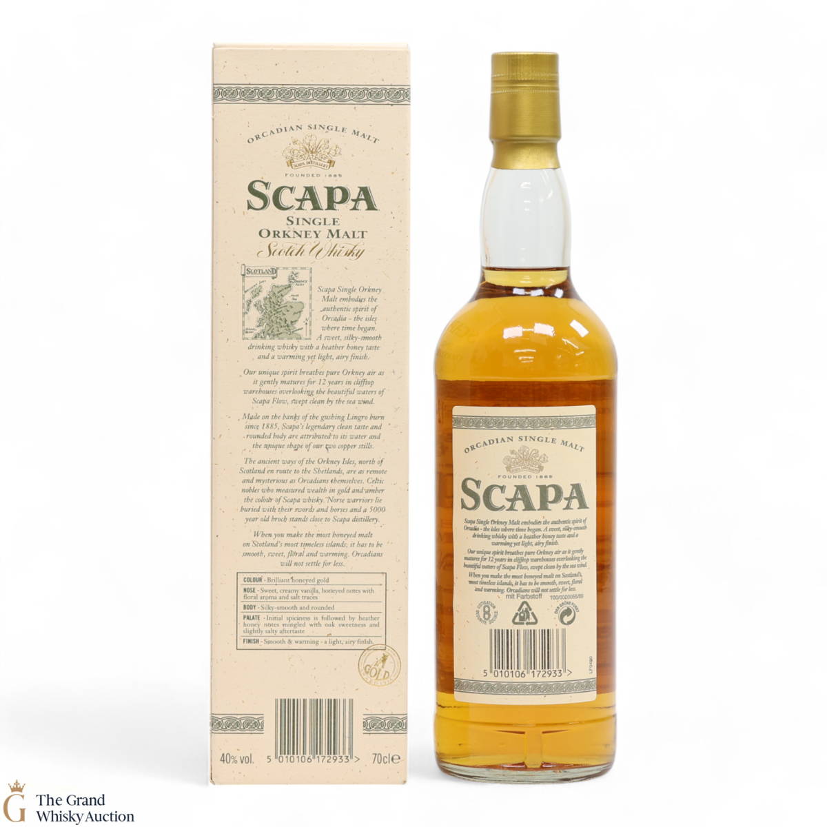 A long discontinued 12 Year Old from the Scapa Distillery in Orkney. It was matured for 12 years in clifftop warehouses overlooking the beautiful waters of the Scapa Flow.