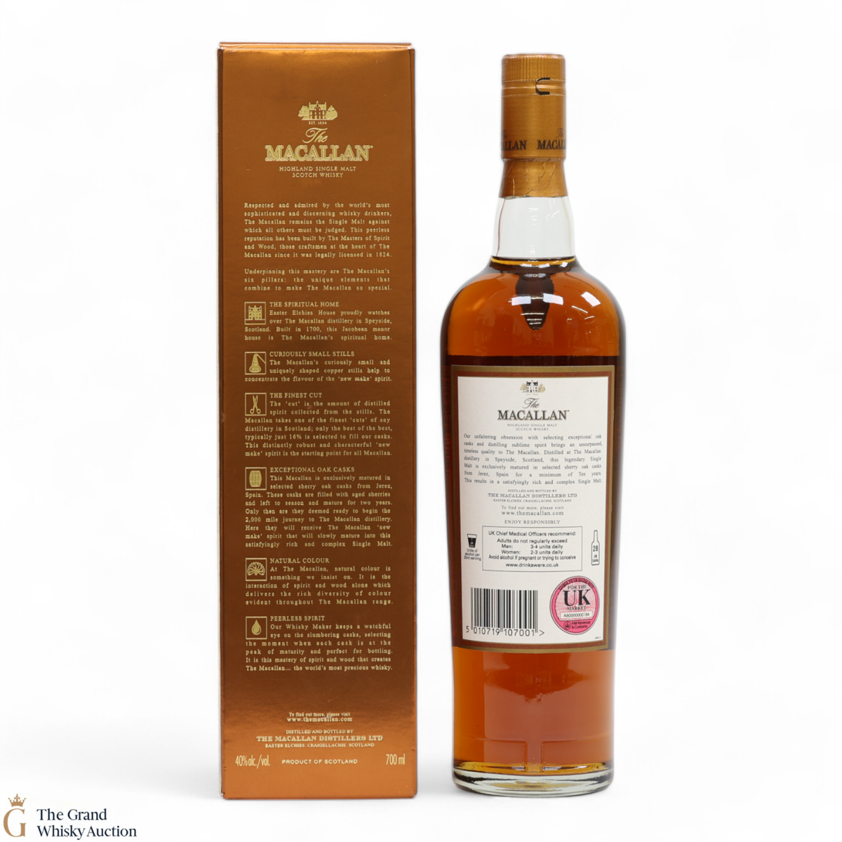 Distilled at the world-renowned Macallan Distillery in Speyside, this single malt was matured exclusively in sherry oak casks from Jerez, Spain. It was aged for a total of 10 years prior to bottling at a strength of 40% ABV.