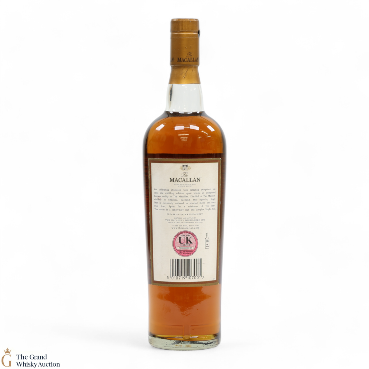 Distilled at the world-renowned Macallan Distillery in Speyside, this single malt was matured exclusively in sherry oak casks from Jerez, Spain. It was aged for a total of 10 years prior to bottling at a strength of 40% ABV.