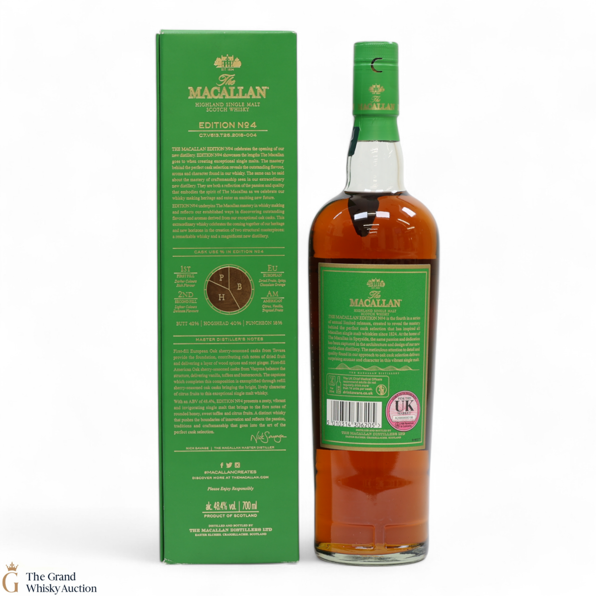 The fourth release in the Edition Series from The Macallan, this Speyside single malt is a celebration of the distillery's whisky making heritage, combining a unique selection of oak cask styles. Edition No.4 reflects the craftsmanship and pioneering design of the new Macallan distillery.