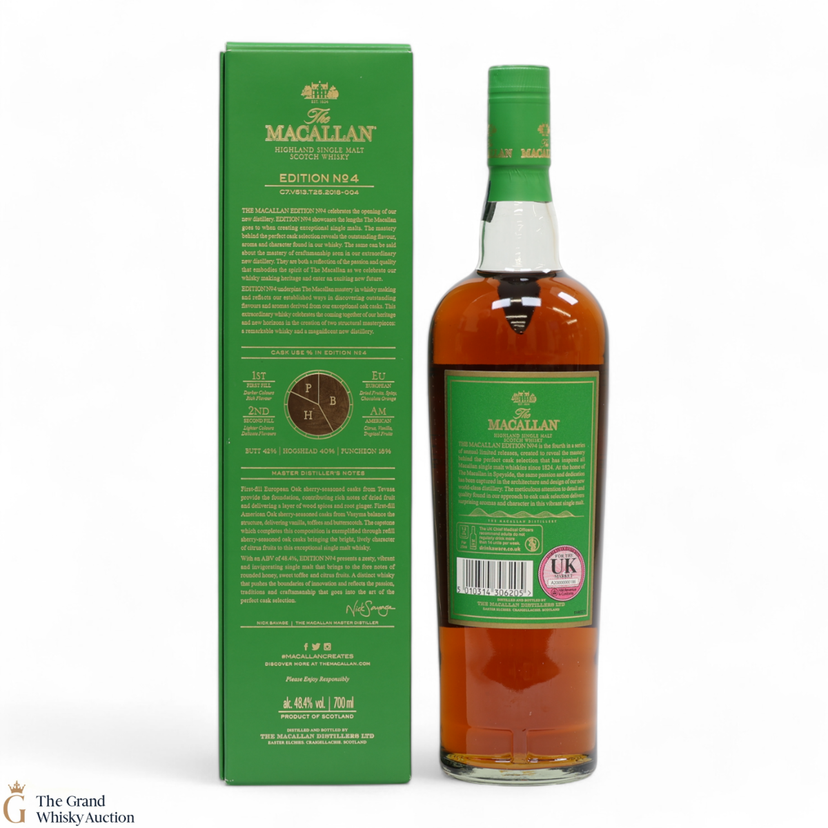 The fourth release in the Edition Series from The Macallan, this Speyside single malt is a celebration of the distillery's whisky making heritage, combining a unique selection of oak cask styles. Edition No.4 reflects the craftsmanship and pioneering design of the new Macallan distillery.