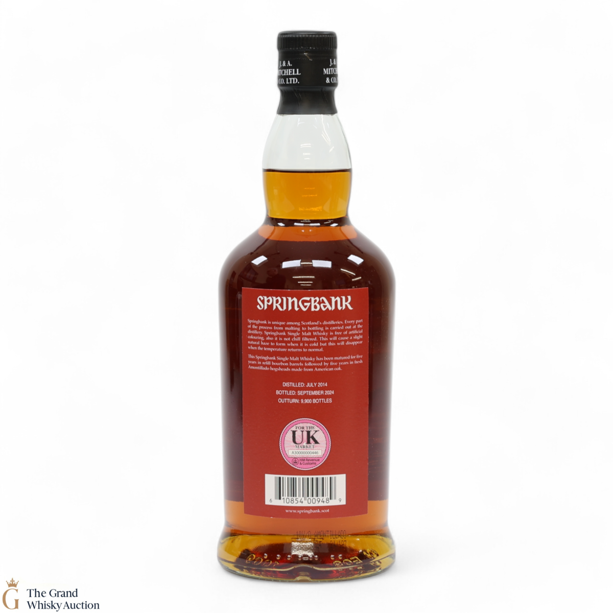 This Springbank Single Malt Whisky was distilled in July 2014 and has been matured for five years in refill bourbon barrels followed by four years in fresh amontillado hogsheads made from American oak. It was then bottled in September 2024 at a strength of 55% ABV with an outturn of 9,900 bottles.