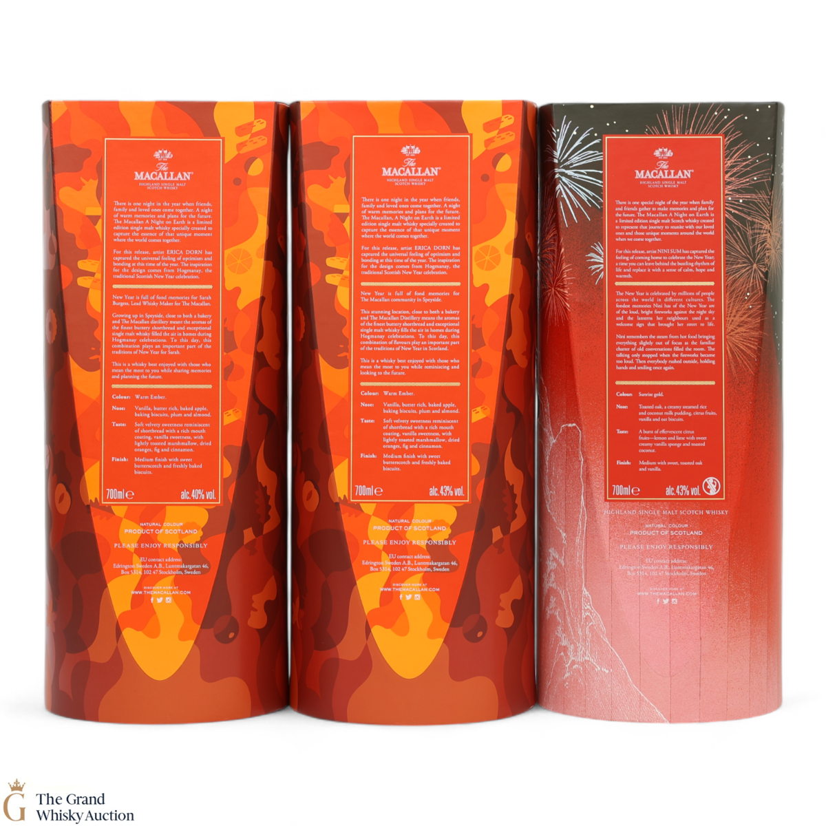 Macallan - A Night on Earth in Scotland 43% - A limited-edition release encapsulating the story of New Year in Scotland, reflecting the joy of celebrating special occasions with loved ones during the world-famous Hogmanay festivities celebrated annually on 31st December.