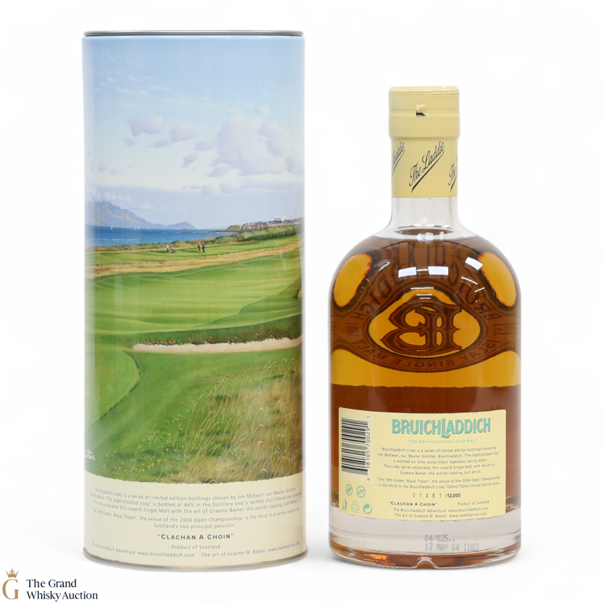 This bottling was the third release in the Bruichladdich Links collection. This 14-year-old single malt depicts Royal Troon, the 18th Green - the venue for the 2004 Open Championship.