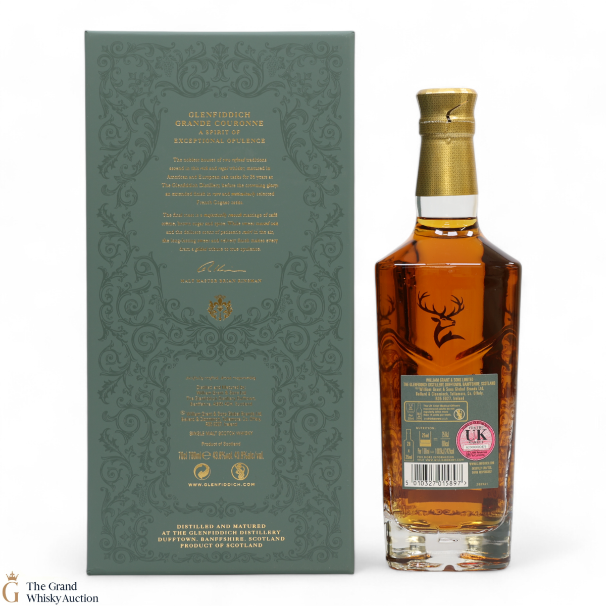 This 26 year old single malt is the highlight of the Glenfiddich Grand Series, whiskies which celebrate the merging of two worlds coming together. After maturing at the Glenfiddich Distillery, Grande Couronne has an extended two-year finish in rare French Cognac casks.