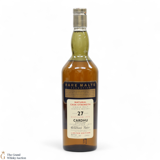 This Cardhu 27-Year-Old limited edition was bottled for the Rare Malts series. Distilled in 1973 this Speyside single malt was bottled at the natural cask strength of 60.02% in October 2000.