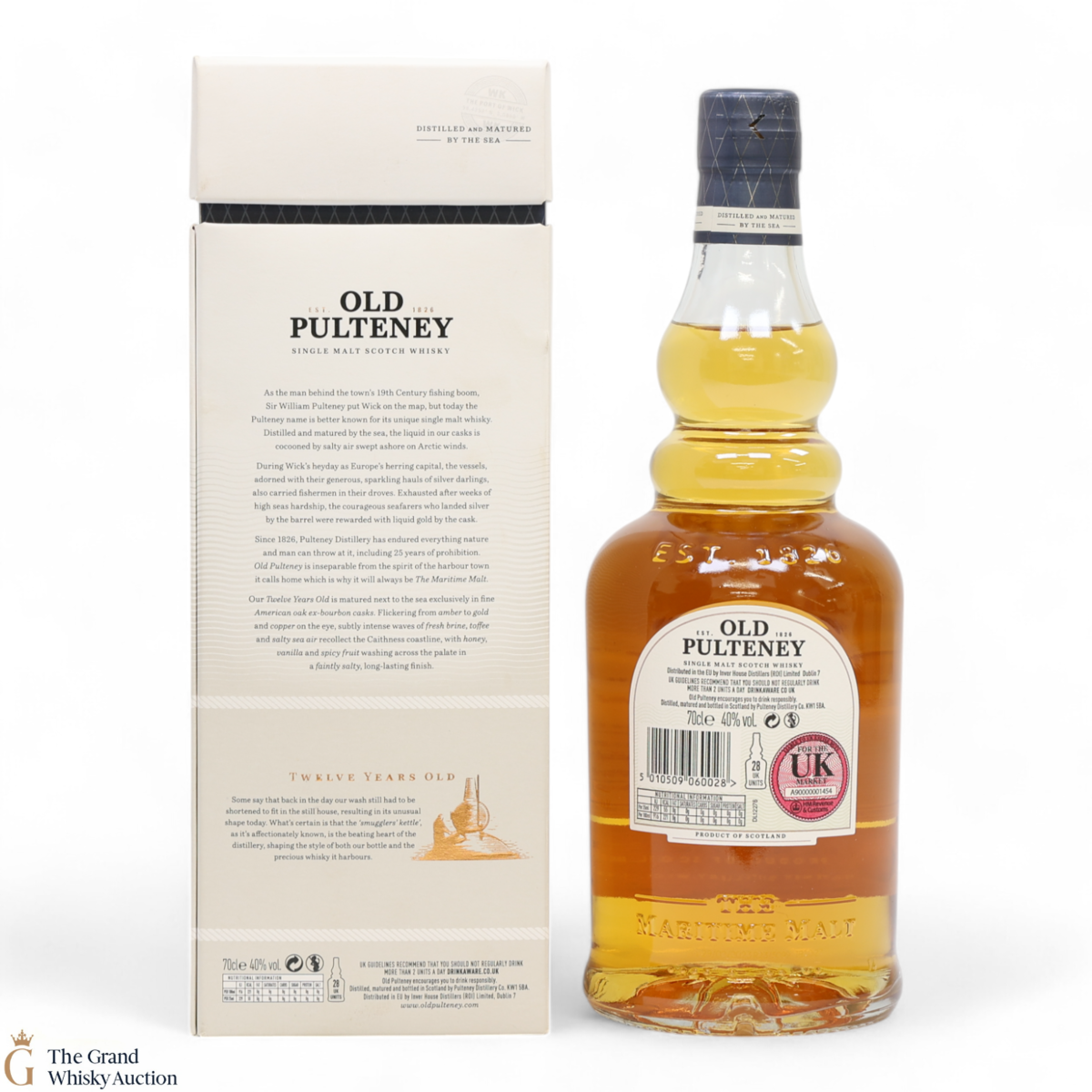 Old Pulteney is known as the Maritime Malt due to the distillery's location in the very North of Scotland and this is honoured with the unique shape of the bottle.