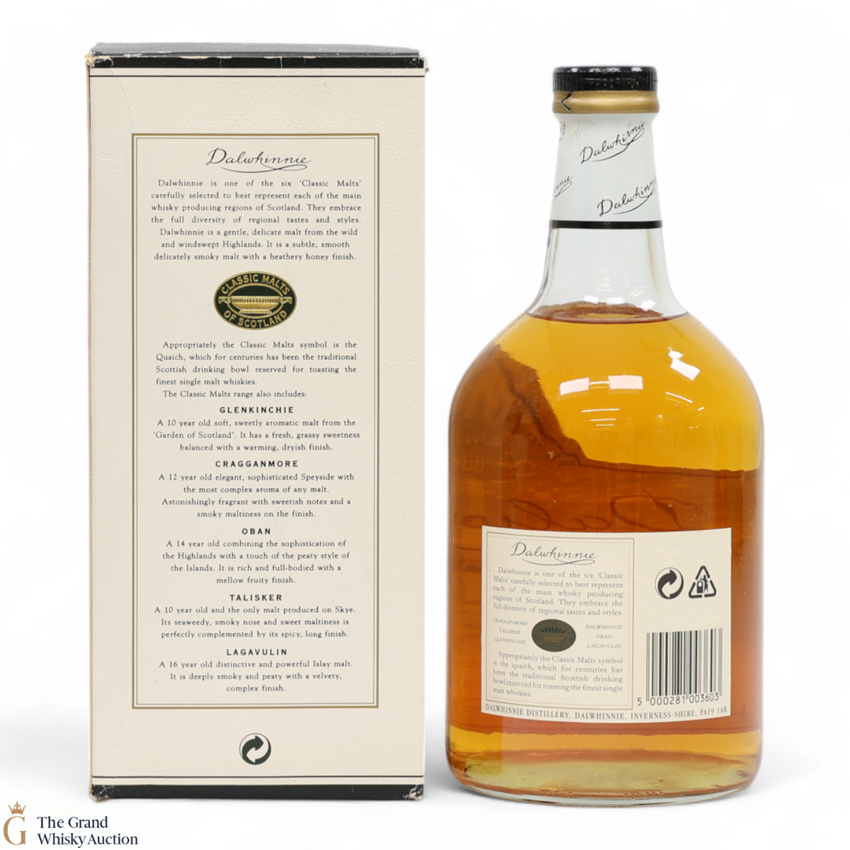 Due to the various ages of bottles and their seals, the condition of liquid is at the buyer's discretion and no claim can be lodged against failure/leakage in transit. Loss and breakage cover is available at 3% of the hammer price as standard. If the lot is not insured, no claim can be lodged against the courier or The Grand Whisky Auction for breakage or loss in transit.