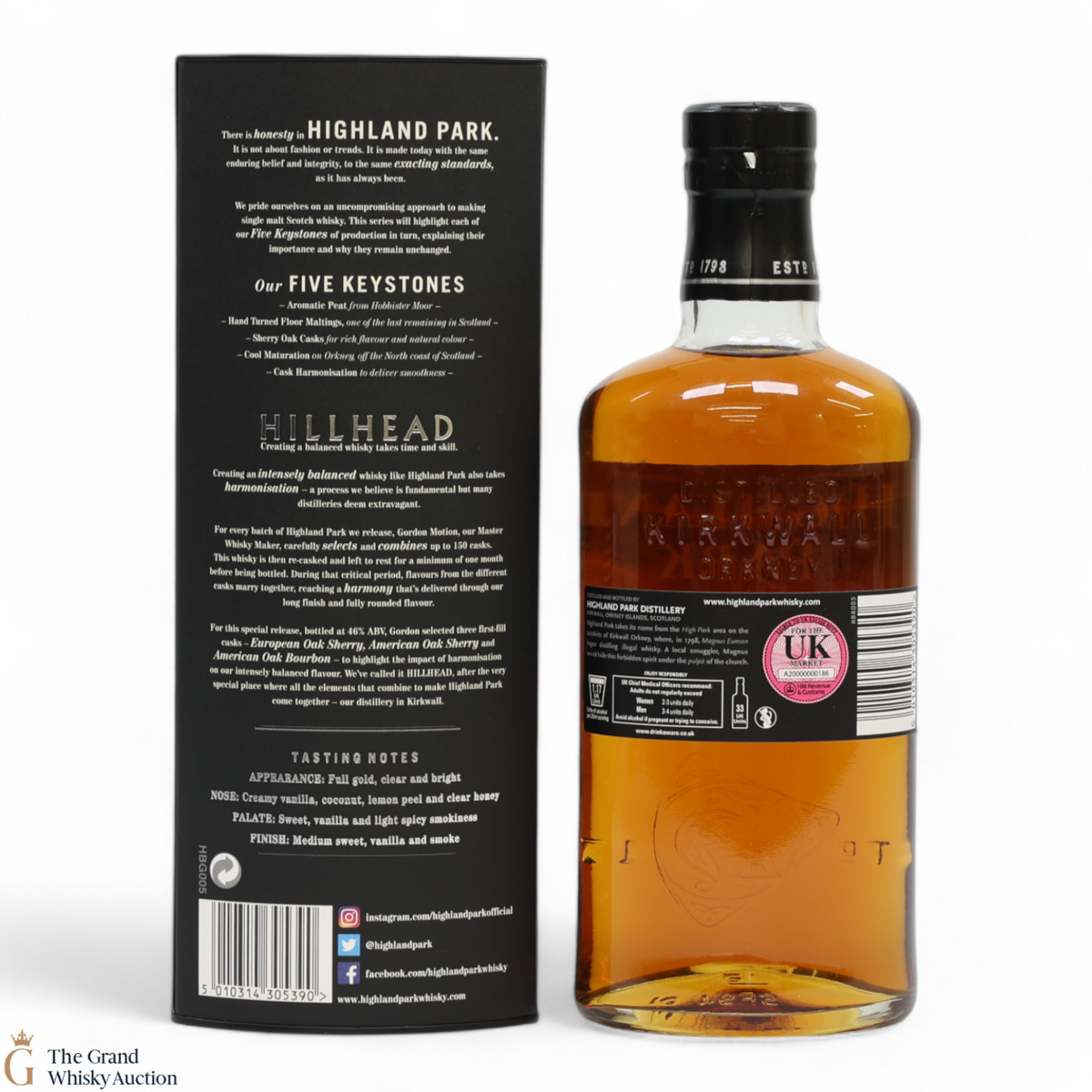 'Hillhead' bottled at 46% ABV, marries both flavour and strength and was matured in three casks: European Oak Sherry, American Oak Sherry and American Oak Bourbon. Hillhead was the last in a series of five special editions, showcasing Highland Park's five keystones of production.