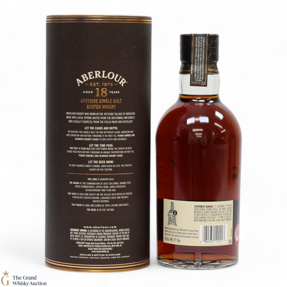 A bottle of Aberlour 18-Year-Old - described by the distillery as the 'perfect expression of our Founder's motto "Let The Deed Show".
