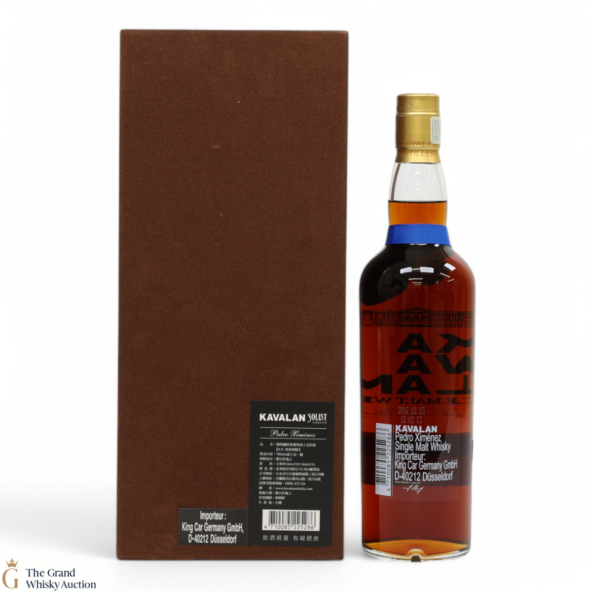This lot is a Single cask #PX110321027A Cask Strength Kavalan that has been matured in a single PX Sherry cask.