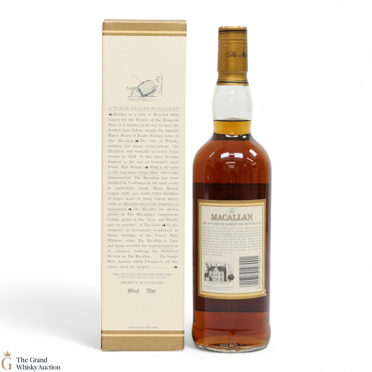 This single malt was distilled at the world-renowned distillery, Macallan, known for its sherry-seasoned cask finishes. It matured for a total of 10 years in sherry casks before being bottled in the 1990s.