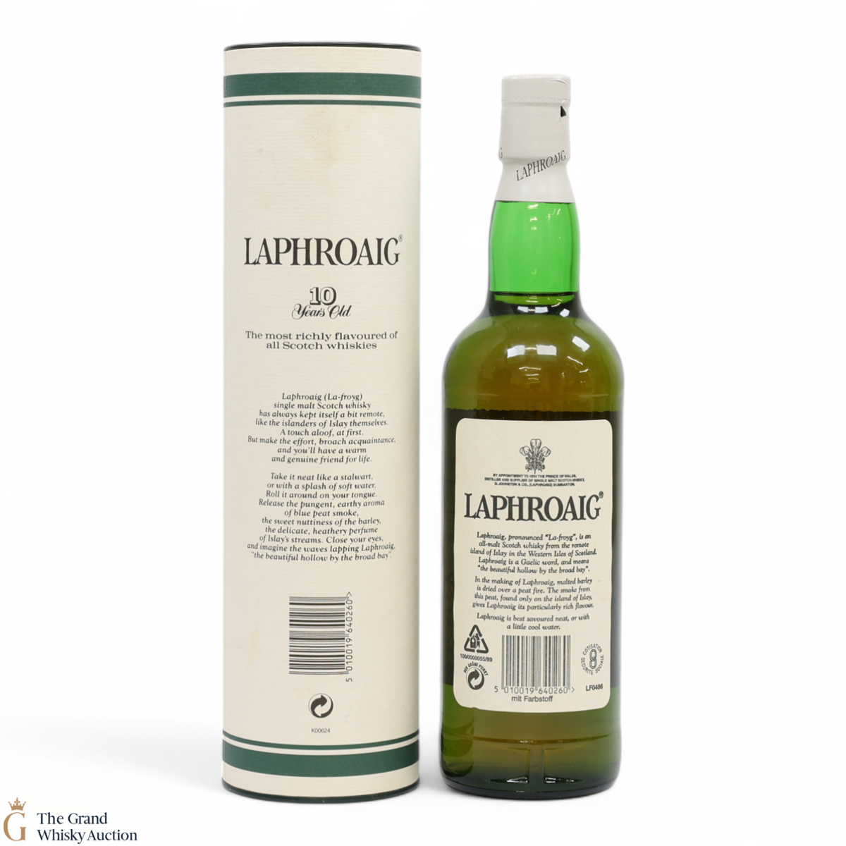 A 70cl of the medicinal 10 year old from Islay's bestselling distillery, Laphroaig. In making Laphroaig, malted barley is dried over a peat fire. The smoke from this peat, found only on Islay, gives Laphroaig its particularly rich flavour.