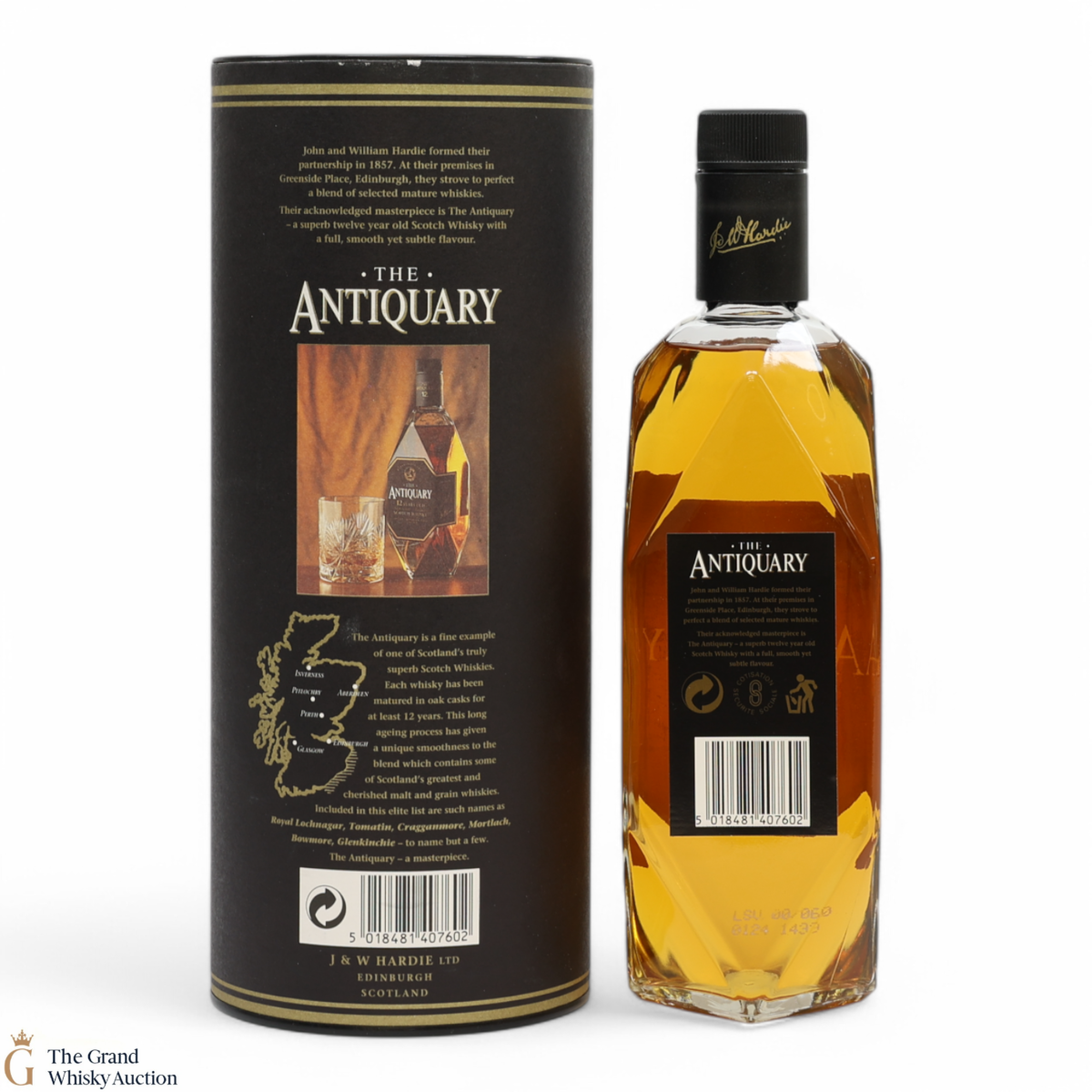 This bottling from Antiquary is a blend of some of Scotland's greatest 12-year-old malt and grain whiskies, including Royal Lochnagar, Tomatin, Cragganmore, Mortlach, Bowmore, Glenkinchie to name a few. Also, a quirky feature is that In the lid of this bottle box, there is a coaster that pops out!