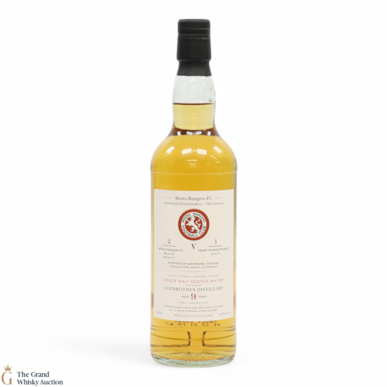 Distilled at Glenrothes Distillery, this single malt was matured for 9 years before being bottled by the Eagle Hotel in Dornoch, Sutherland. This bottle was produced to commemorate the 2-1 victory Brora Rangers gained over Hearts on the 23rd of March 2021.
