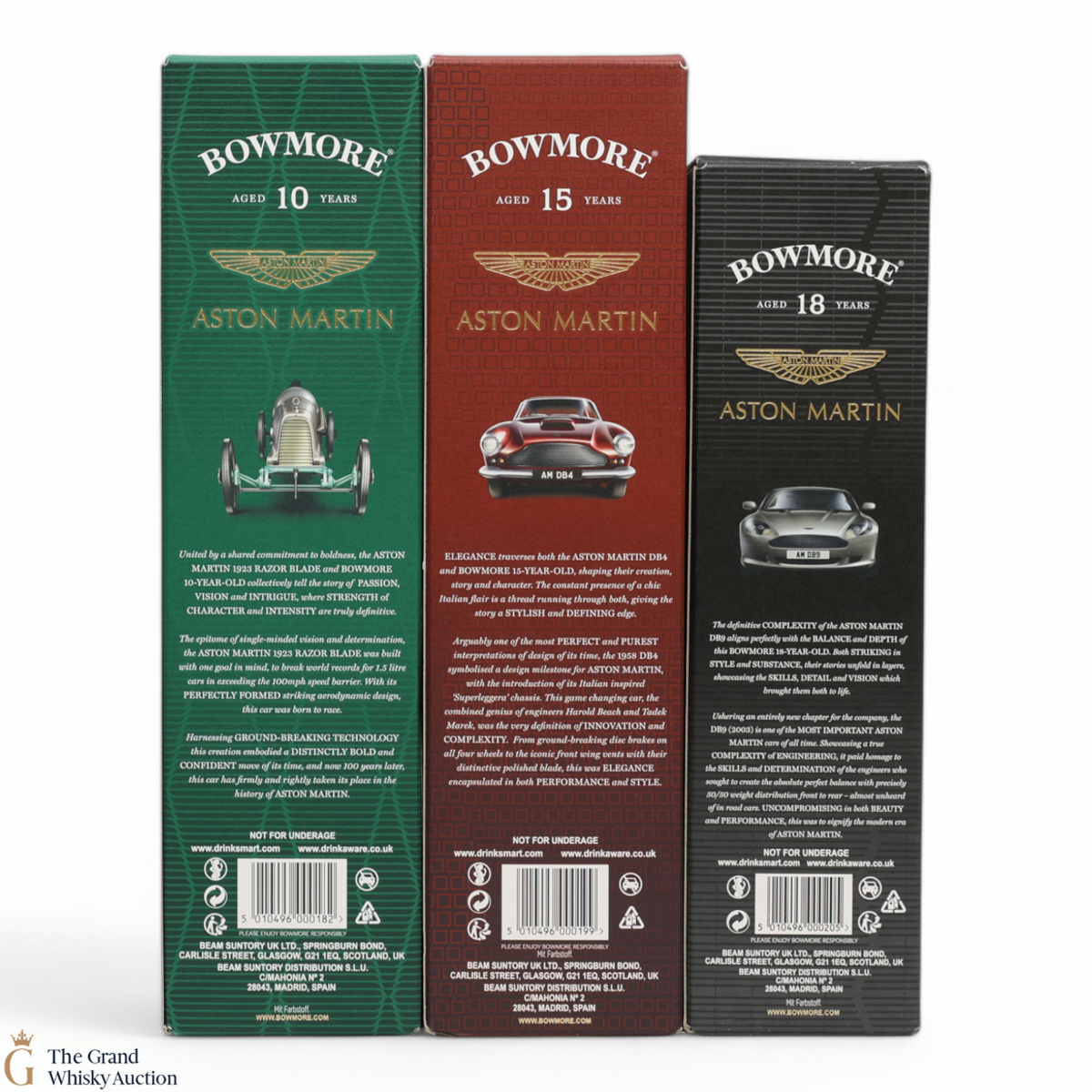 Bowmore - 15 Year Old - Aston Martin Edition 8 (1L): Edition 8 of the Bowmore x Aston Martin collaboration celebrates the iconic Aston Martin 1958 DB4. Arguably one of the most perfect and purest interpretations of design of its time. This single malt was married in 1st fill Bourbon casks to create a refreshingly, silky peat-smoked character with notes of citrus. 43% ABV
