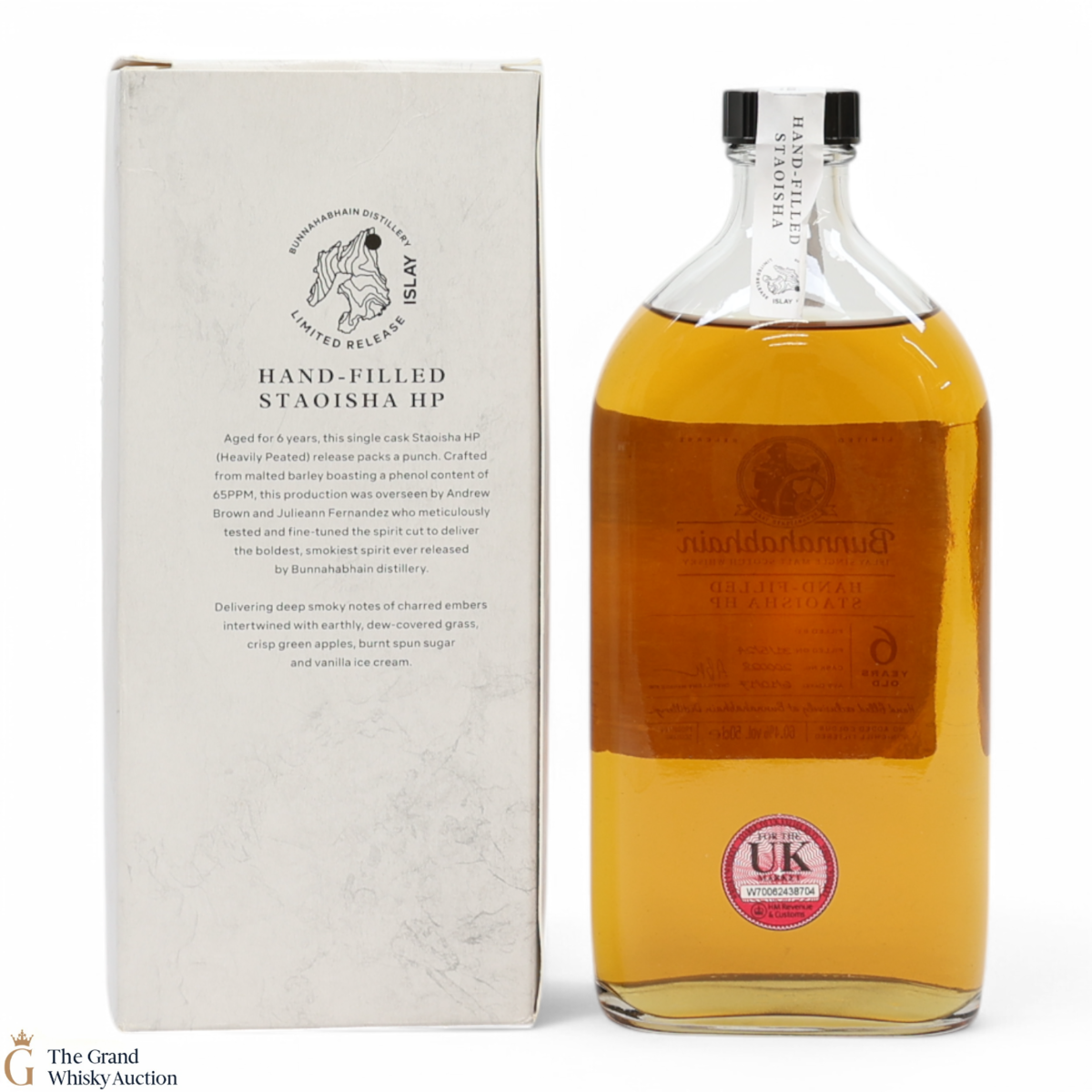 This is a 50cl bottling of Bunnahabhain 6-Year-Old Staoisha HP Single Malt. Distilled on the 6th of October 2017 and bottled on the 31st of May 2024.