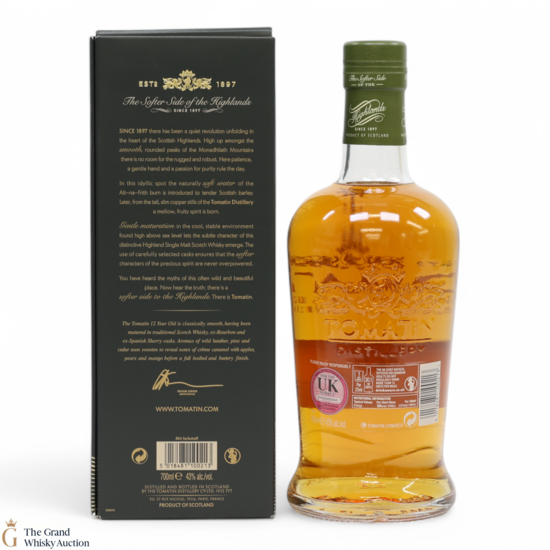 In 2014, the Tomatin 12 Year Old was given an update and bottled at 43% ABV rather 40%, as it was previously. This core single malt from the ace distillery in the Highlands is finished for six-to-nine months in Oloroso Sherry casks before being bottled.