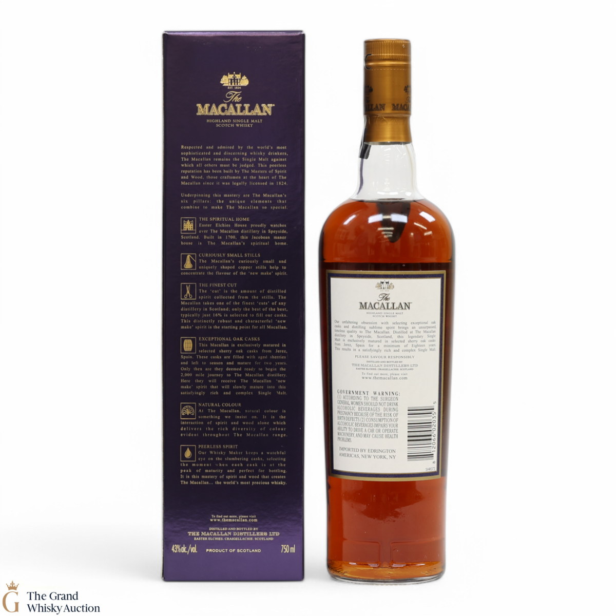 This annual release of The Macallan's popular 18 Year Old Sherry Oak is matured exclusively in sherry seasoned casks, built from both Spanish and American oak, providing a beautifully dark flavour with rich aromas.