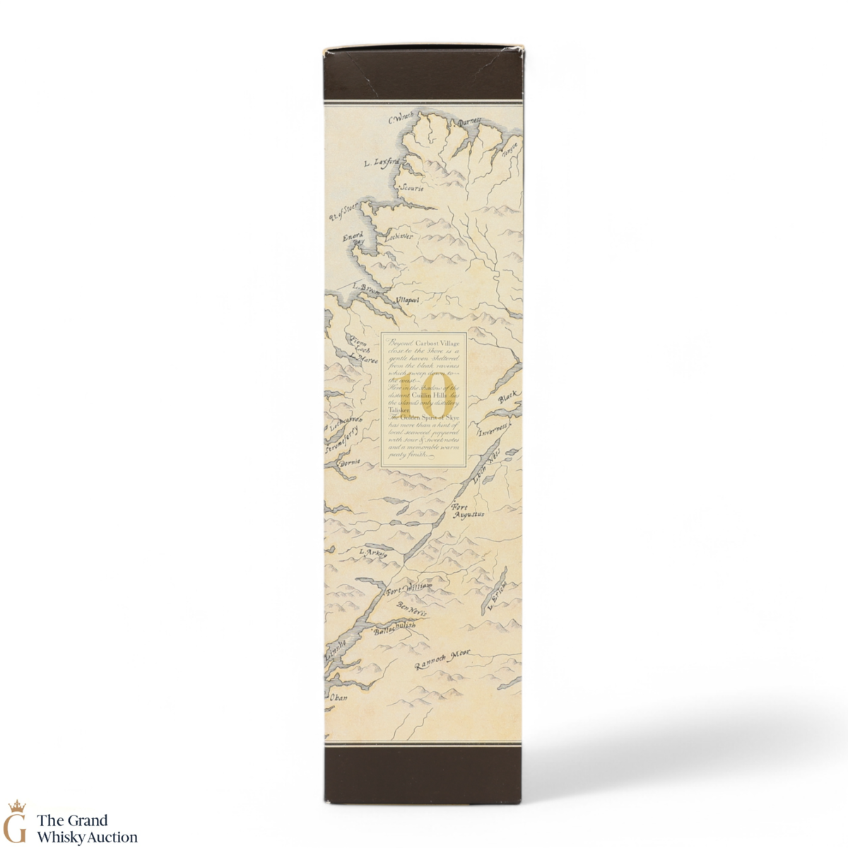 An older release of 10 Year Old from Talisker Distillery on the Isle of Skye. Aged for a minimum of 10 years in American oak casks. The bottle label and the box feature a map of Skye.