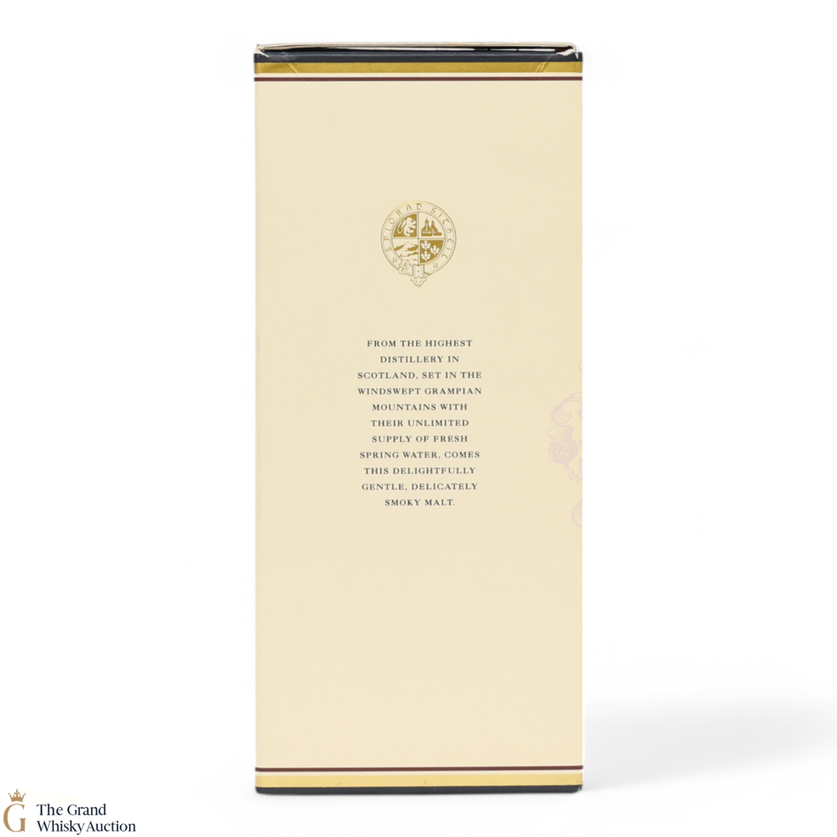 Due to the various ages of bottles and their seals, the condition of liquid is at the buyer's discretion and no claim can be lodged against failure/leakage in transit. Loss and breakage cover is available at 3% of the hammer price as standard. If the lot is not insured, no claim can be lodged against the courier or The Grand Whisky Auction for breakage or loss in transit.