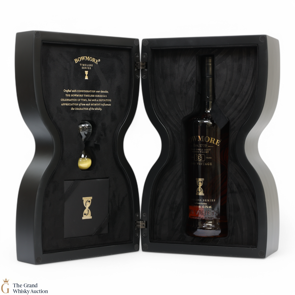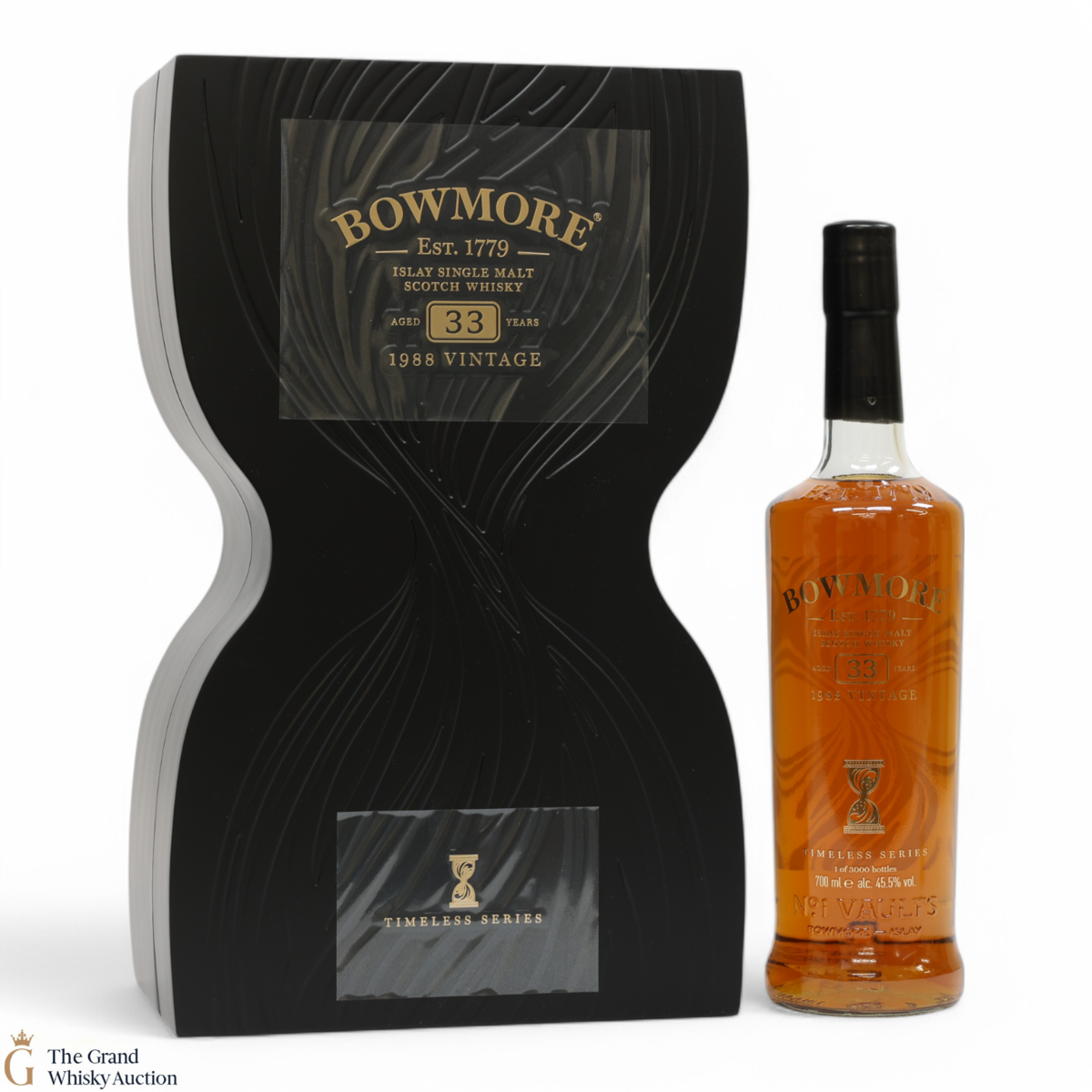 This beautifully presented Bowmore single malt is one of just three thousand released. Matured for a total of 33 years, this Bowmore is a vatting of ex-bourbon barrels and sherry finish, shaped by Matusalem sherry seasoned butts and 2nd fill European oak oloroso sherry butts. Bottled at 45.5 % ABV.