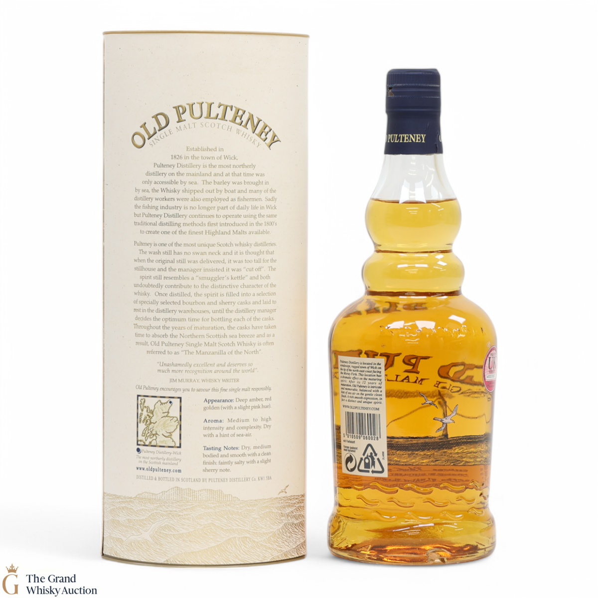 Old Pulteney is known as the Maritime Malt due to the distillery's location in the very North of Scotland and this is honoured with the unique shape of the bottle.