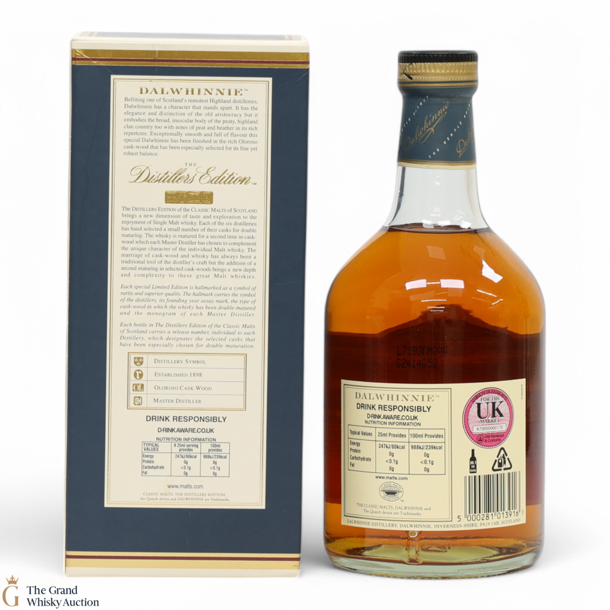 This Dalwhinnie Distillers Edition was distilled in 1990. This single malt whisky of the Classic Malts Selection was double matured in cask-wood.