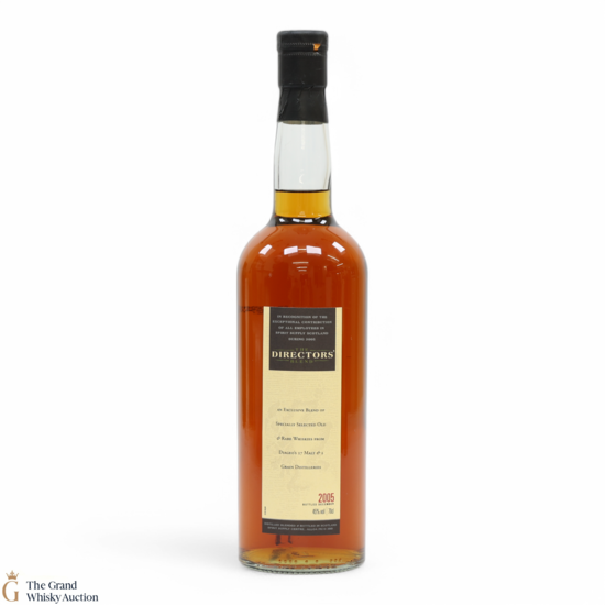 This special release is the Diageo The Directors' Blend. It is a blended Scotch whisky, bottled in December 2005 and gifted exclusively to Diageo employees in recognition of their exceptional contribution. It is made up of whiskies from all of Diageo's 29 distilleries including, 27 malt distilleries and 2 grain distilleries.