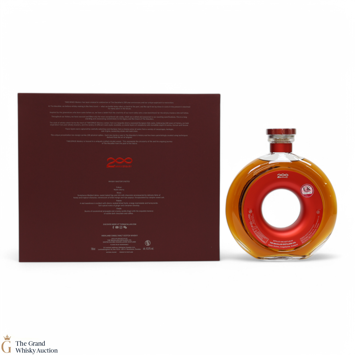 This whisky is contained in a unique circular vessel symbolising the circle of life and the ongoing journey from the past to the future. It was matured in one of Macallan's bespoke sherry-seasoned European oak casks until bottled at a strength of 43.6% ABV.