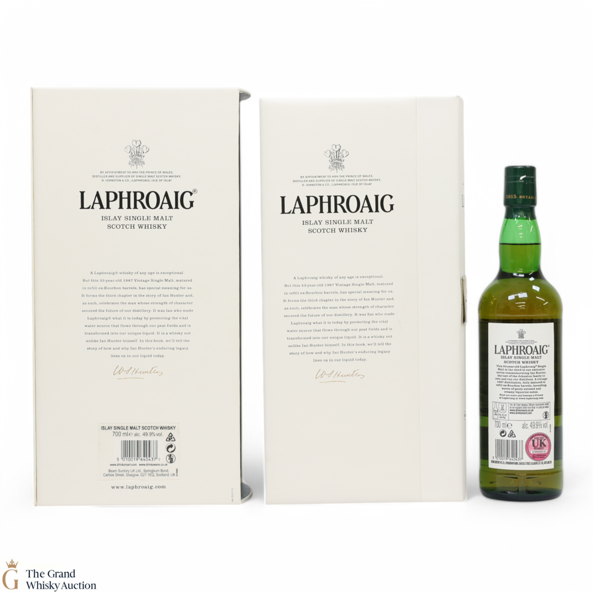 This is a 33 year old single malt, distilled in 1987 and matured in ex-bourbon barrels. This bottle forms the third chapter "Source Protector" to the story of Ian Hunter and celebrates the man who introduced the iconic American white Oak barrels to the whisky making at Laphroaig. It is said that it was Ian who made Laphroaig what it is today.