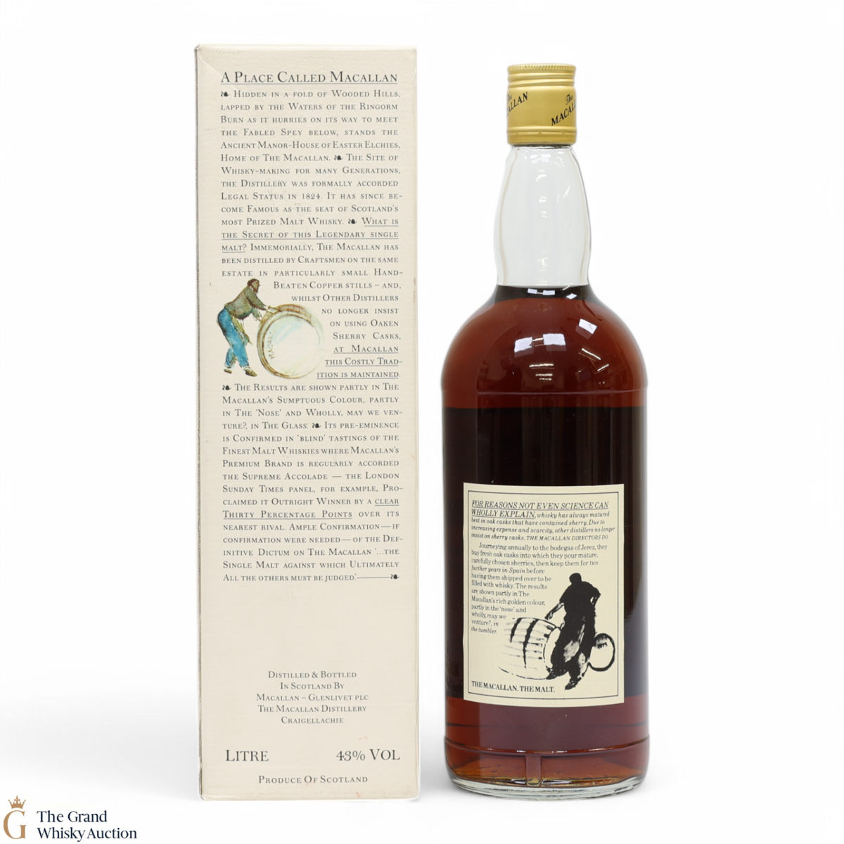 This is a 1-liter bottling of 12-year-old single malt from Macallan, bottled in the 1990s. Very collectible indeed.
