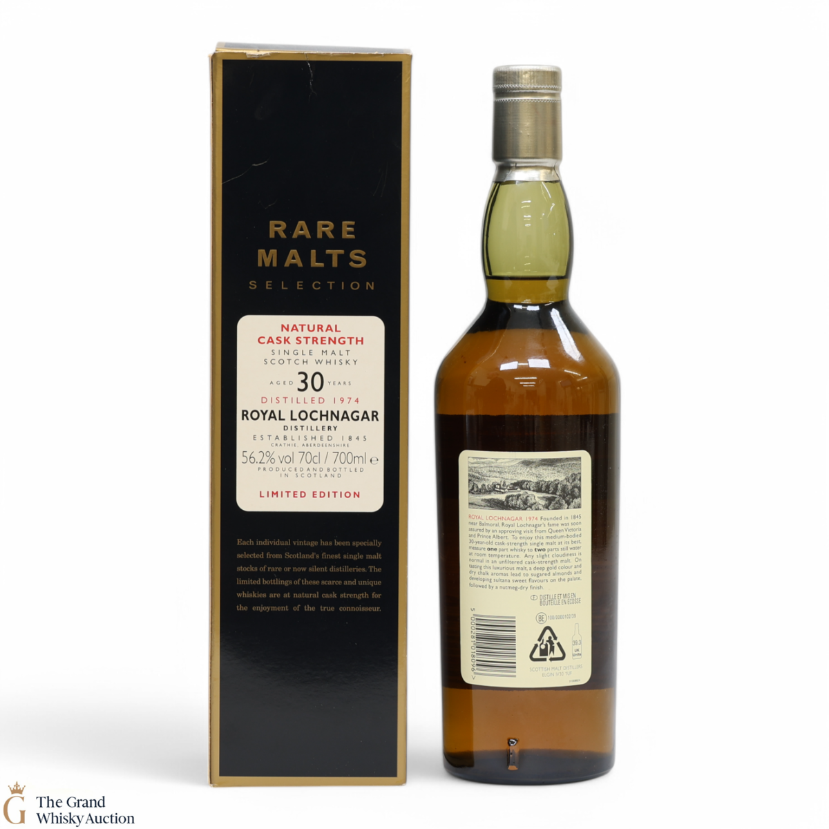This Rare Malts Selection bottling of single malt whisky from the Royal Lochnagar distillery is highly collectable. It was distilled in 1974 and bottled 30 years later in 2004, and bottled at its cask strength of 56.2% ABV.