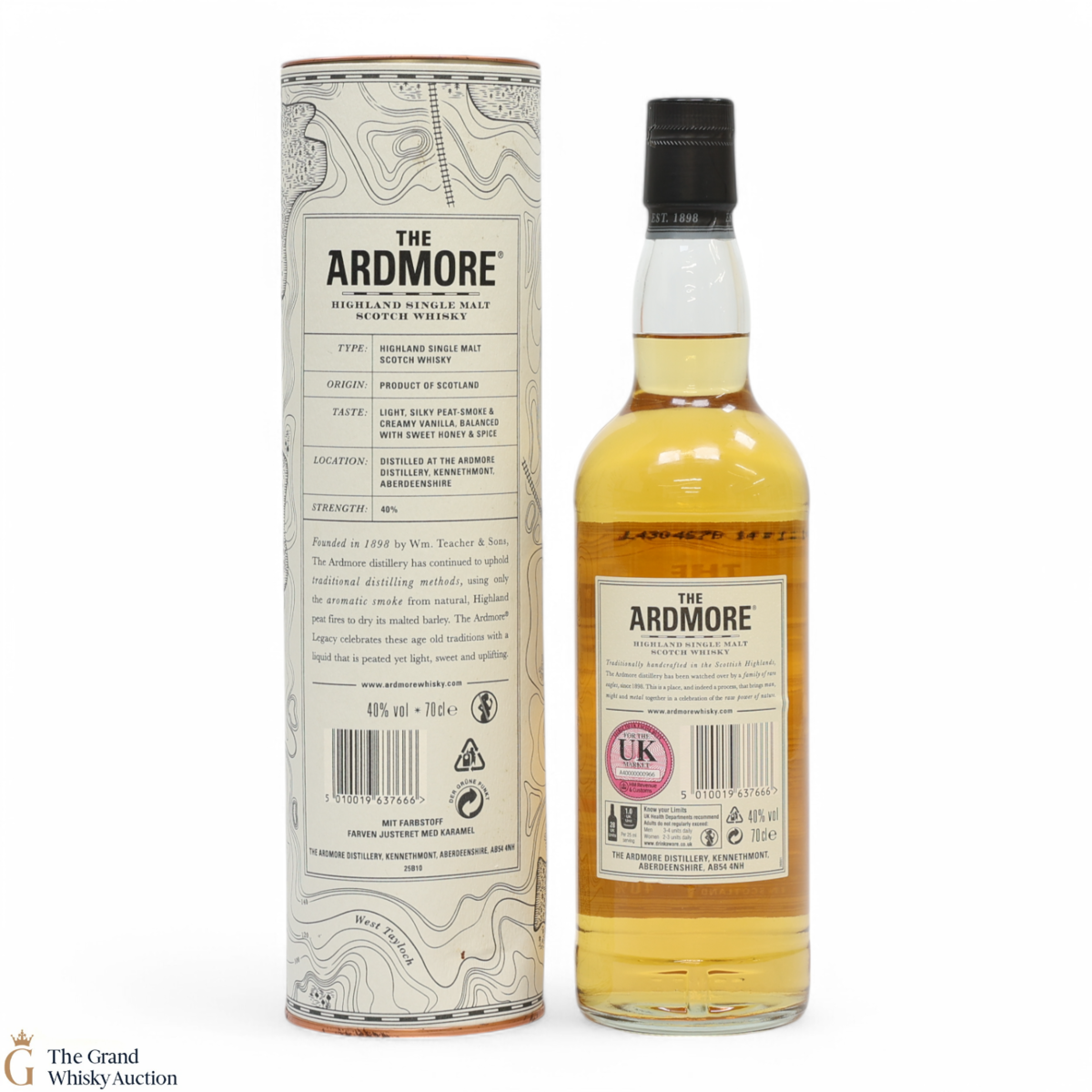 Ardmore Legacy was launched in 2014 to replace Ardmore Traditional. Ardmore Legacy is made with 80% peated and 20% unpeated malt.