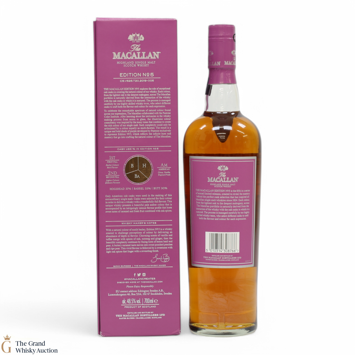 The fifth release in the Edition Series from The Macallan, The Macallan Edition No. 5 celebrates The Macallan’s extensive natural colour spectrum and the intricate whisky-making process, in partnership with masters at the Pantone Color Institute™ to create a unique shade of purple that features on the packaging.