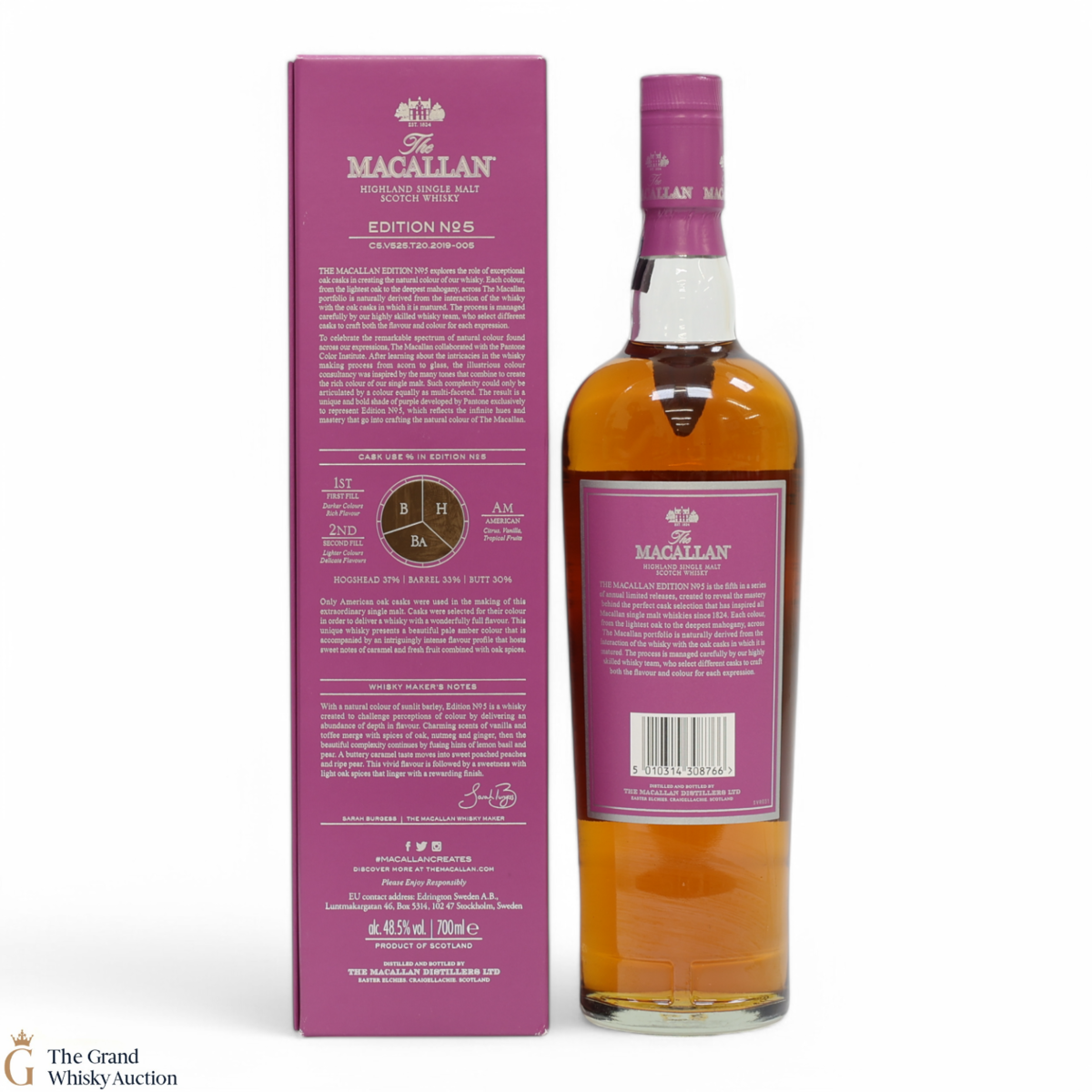 The fifth release in the Edition Series from The Macallan, The Macallan Edition No. 5 celebrates The Macallan’s extensive natural colour spectrum and the intricate whisky-making process, in partnership with masters at the Pantone Color Institute™ to create a unique shade of purple that features on the packaging.