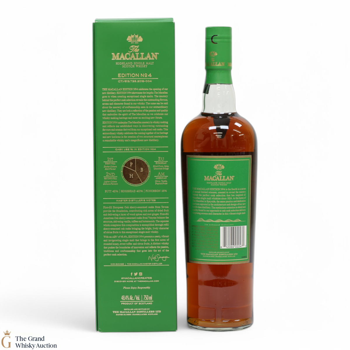 The fourth release in the Edition Series from The Macallan, this Speyside single malt is a celebration of the distillery's whisky making heritage, combining a unique selection of oak cask styles. Edition No.4 reflects the craftsmanship and pioneering design of the new Macallan distillery.