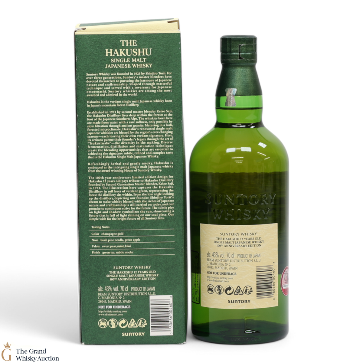 This is a 100th-anniversary limited edition bottling from Hakushu that has been aged for 12 years before its release in 2023, which lies in the foothills of Mount Kaikomagatake.