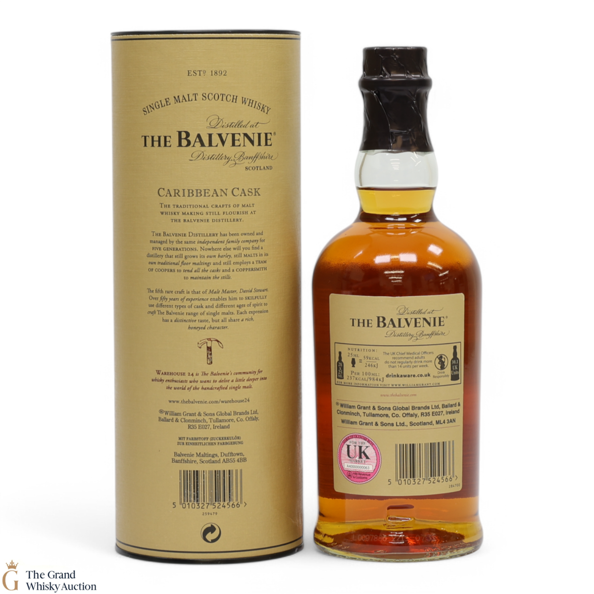 This lot is the famous Balvenie Caribbean Cask 14-year-old single malt whisky.