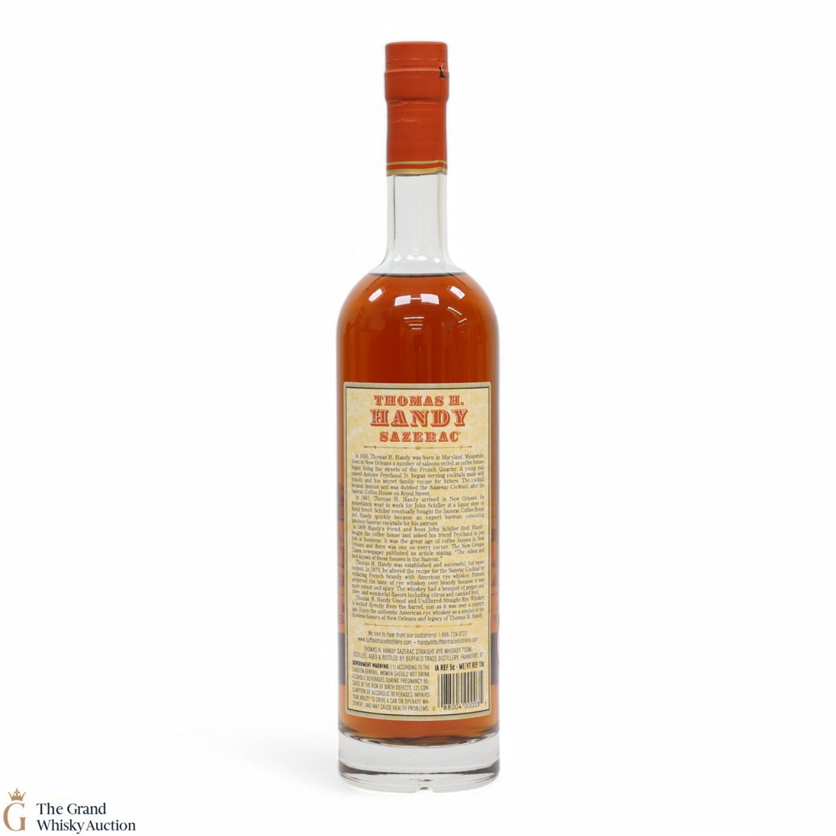 This collection is dubbed the antique collection and celebrates famous figures. The companies founder, Thomas H. Handy, is on the front of this bottle with the picture of the Sazerac Coffee House where everything started.
