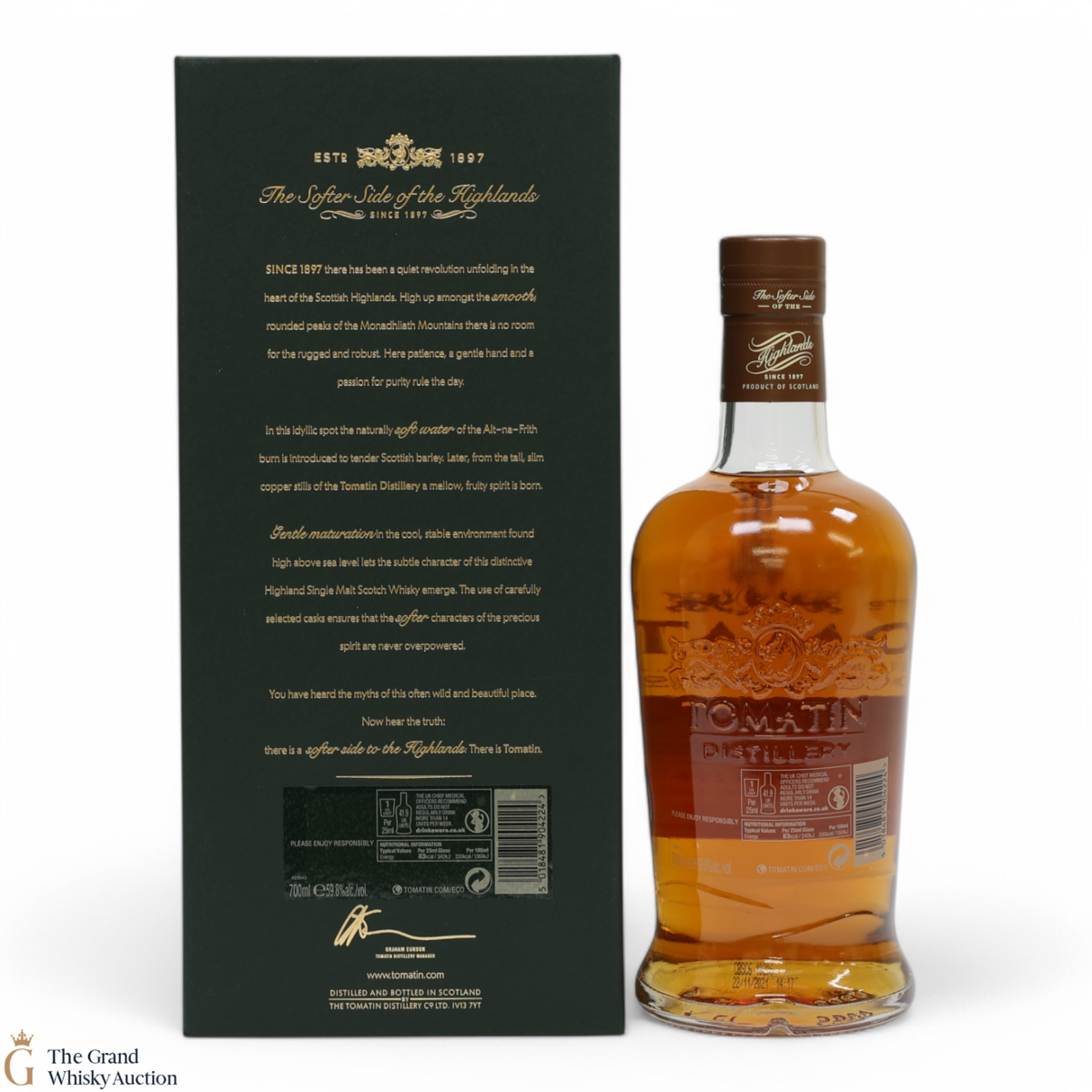 Tomatin Distillery was founded in 1897 by the Tomatin Spey Distillery Company, located in the Highlands between Aviemore and Inverness. Going through various fluctuations in production whilst growing from 2 stills to 23 stills throughout the 60s and 70s before going into liquidation. In 1985 the Distillery was purchased by long-term Japanese customers, Takara Shuzo Co. and Okara & Co. thus becoming the first Scottish distillery to be under Japanese management. Later the prestigious Antiquary blender J&W Hardie was added to the portfolio, and Marubeni bought the distillery. In more recent years production has been downsized to utilise just 10 stills and the decision was made to focus on the single malt range, such as the ‘Cu Bocan’ expression released in 2013.