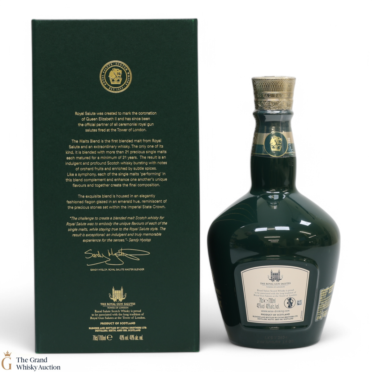 This Royal Salute 21-Year-Old is a blended grain whisky. Bottled at 40% ABV. The Malts Blend is the first blended malt from Royal Salute. It is blended with more than 21 single malts each matured for a minimum of 21 years.