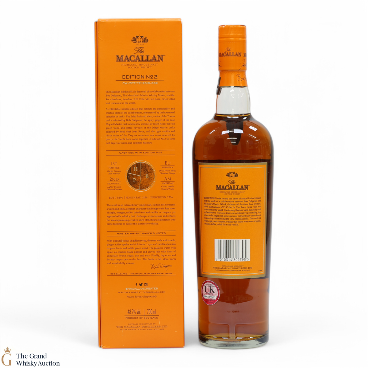 This is the second release from the Macallan Edition series. Edition No.2 is a collaboration between Macallan's master blender Bob Delgarno and legendary Spanish chefs Joan, Josep and Jordi Roca. The Rocas are the three brothers behind El Celler de Can Roca (named Best Restaurant in the World twice by Restaurant magazine). This single malt was drawn from a combination of sherry puncheons, butts and refill hogsheads.