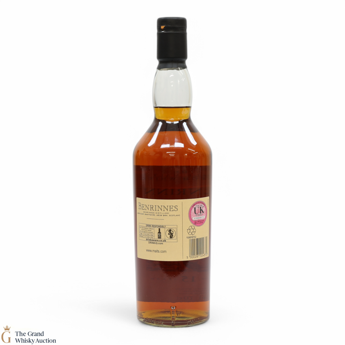 Due to the various ages of bottles and their seals, the condition of liquid is at the buyer's discretion and no claim can be lodged against failure/leakage in transit. Loss and breakage cover is available at 3% of the hammer price as standard. If the lot is not insured, no claim can be lodged against the courier or The Grand Whisky Auction for breakage or loss in transit.