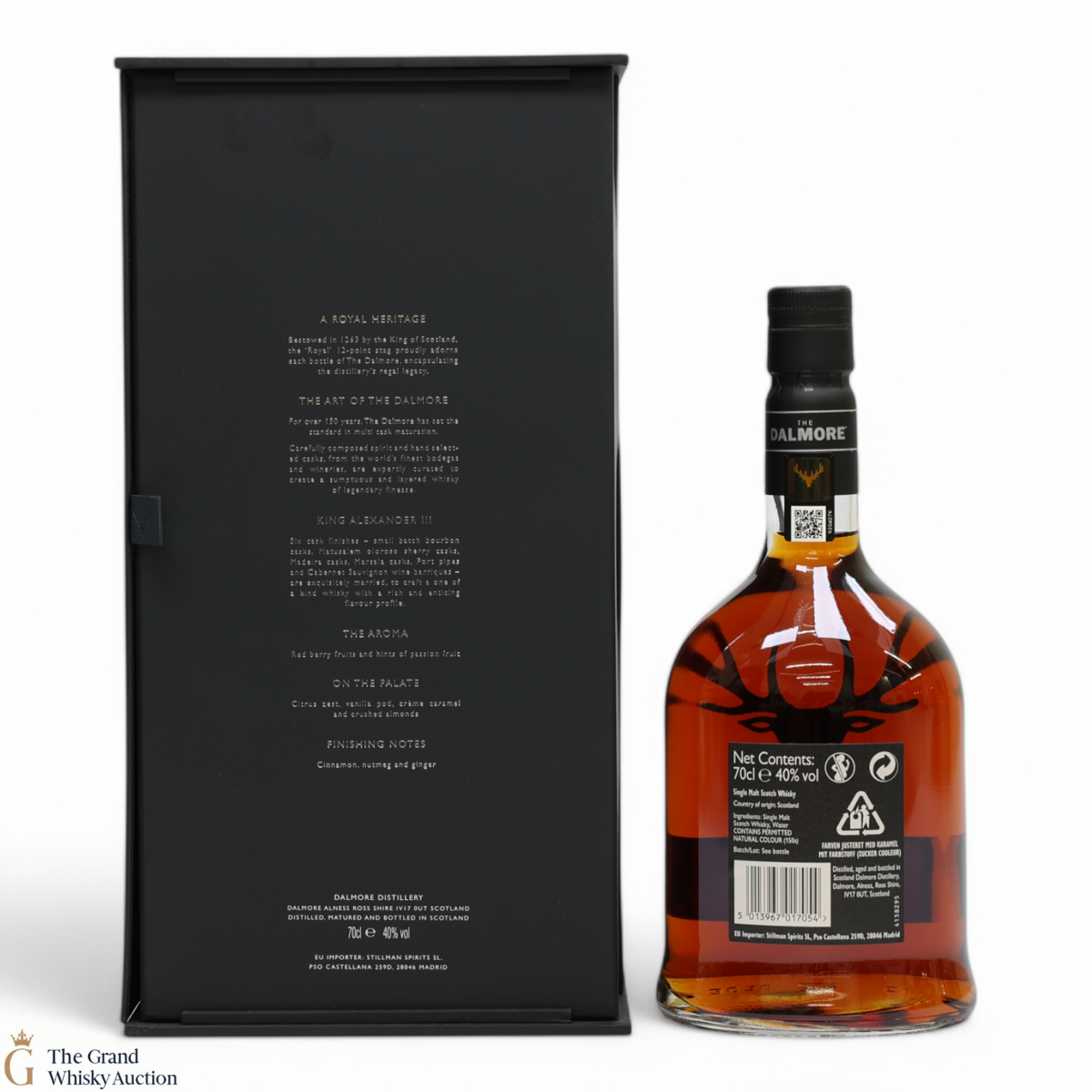 To make The Dalmore King Alexander III, Master Distiller Richard Paterson specially selected 6 casks of differently aged Dalmore malts matured in wine, Madeira, sherry, marsala, Kentucky bourbon and port casks. A remarkable feat of blending crafted to honour the act of saving Scotland's King in 1263. It is a rich, fruity Highland single malt.