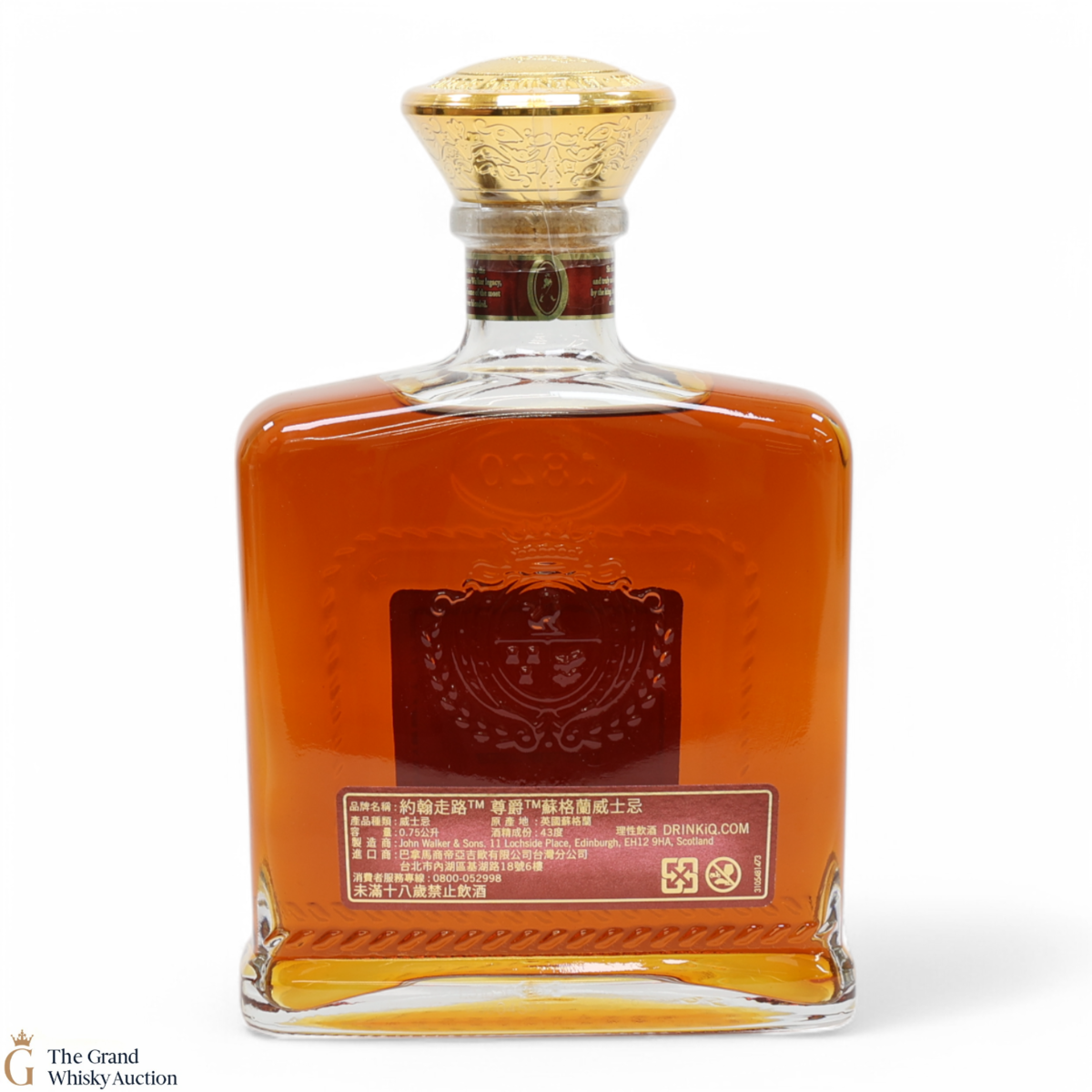 Due to the various ages of bottles and their seals, the condition of liquid is at the buyer's discretion and no claim can be lodged against failure/leakage in transit. Loss and breakage cover is available at 3% of the hammer price as standard. If the lot is not insured, no claim can be lodged against the courier or The Grand Whisky Auction for breakage or loss in transit.