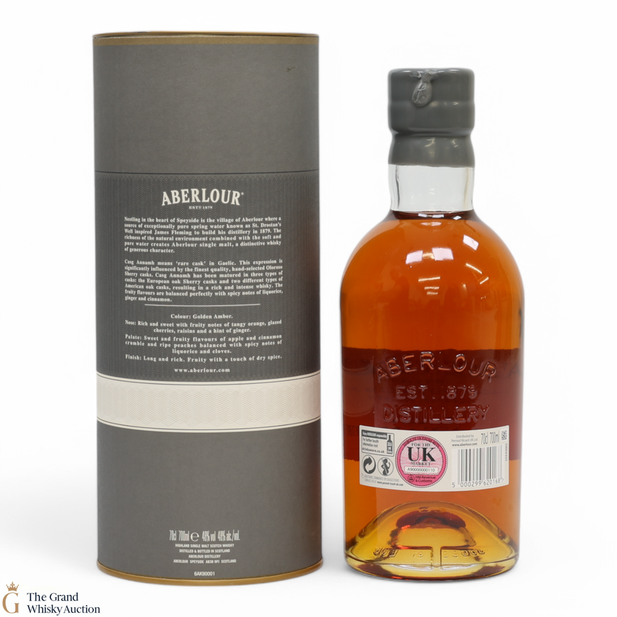 Aberlour Casg Annamh - 'Rare Cask' in Gaelic - sherried release from Aberlour, Triple matured in European oak ex-sherry, American oak ex-sherry and ex-bourbon casks, this is a bold, flavoursome and exceptionally balanced whisky. It is non-chill-filtered and produced in small batches - this bottling is part of Batch 1.
