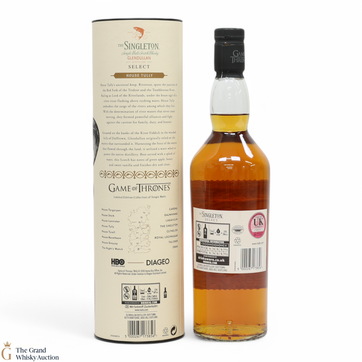 The Singleton Glendullan Reserve hails from Dufftown distillery. Glendullan is located on the banks of the River Fiddich, so it has been cleverly paired with House Tully at Riverrun, which is in the region known as The Riverlands. This single malt Scotch whisky is decorated with a jumping trout - the sigil of House Tully.