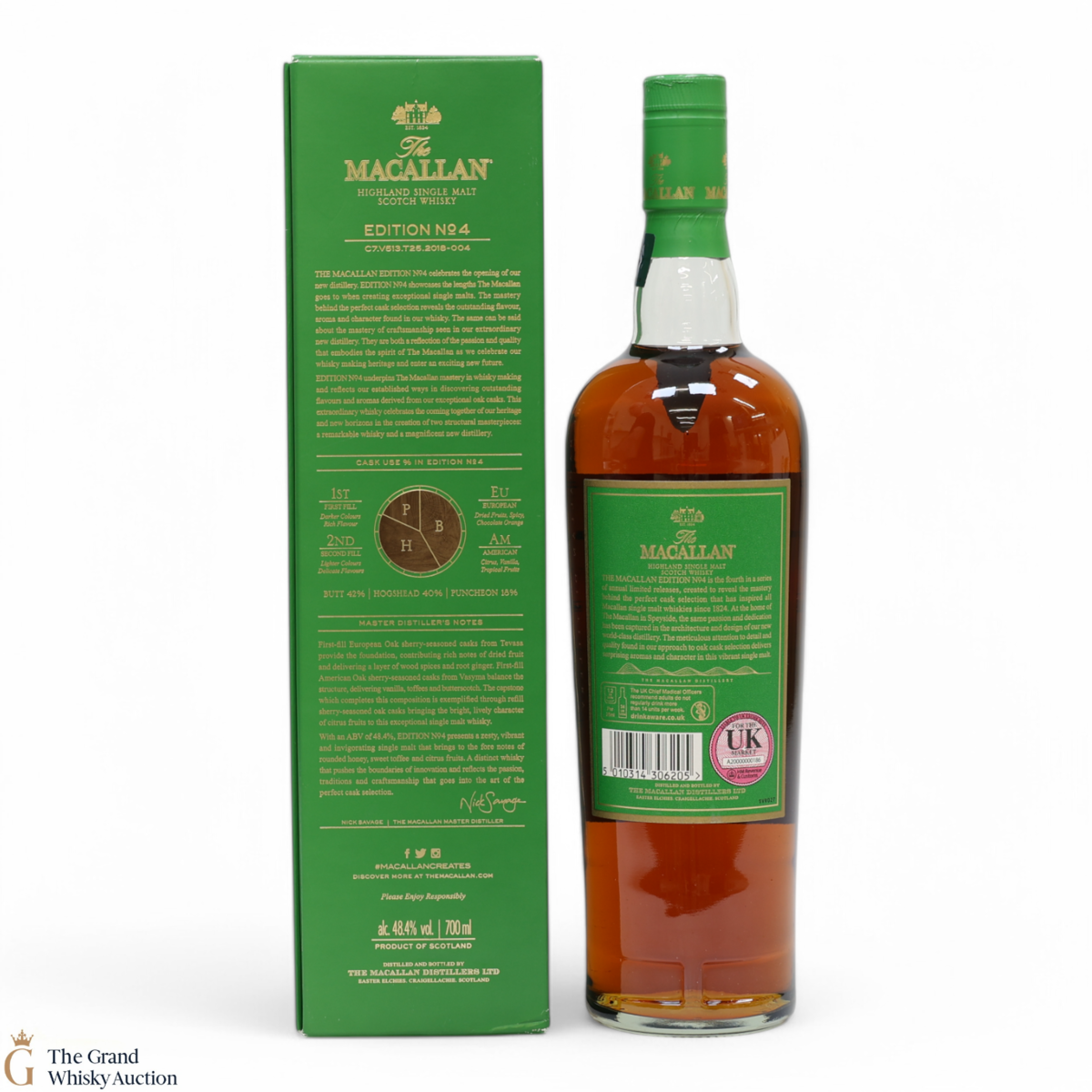 The fourth release in the Edition Series from The Macallan, this Speyside single malt is a celebration of the distillery's whisky making heritage, combining a unique selection of oak cask styles. Edition No.4 reflects the craftsmanship and pioneering design of the new Macallan distillery.